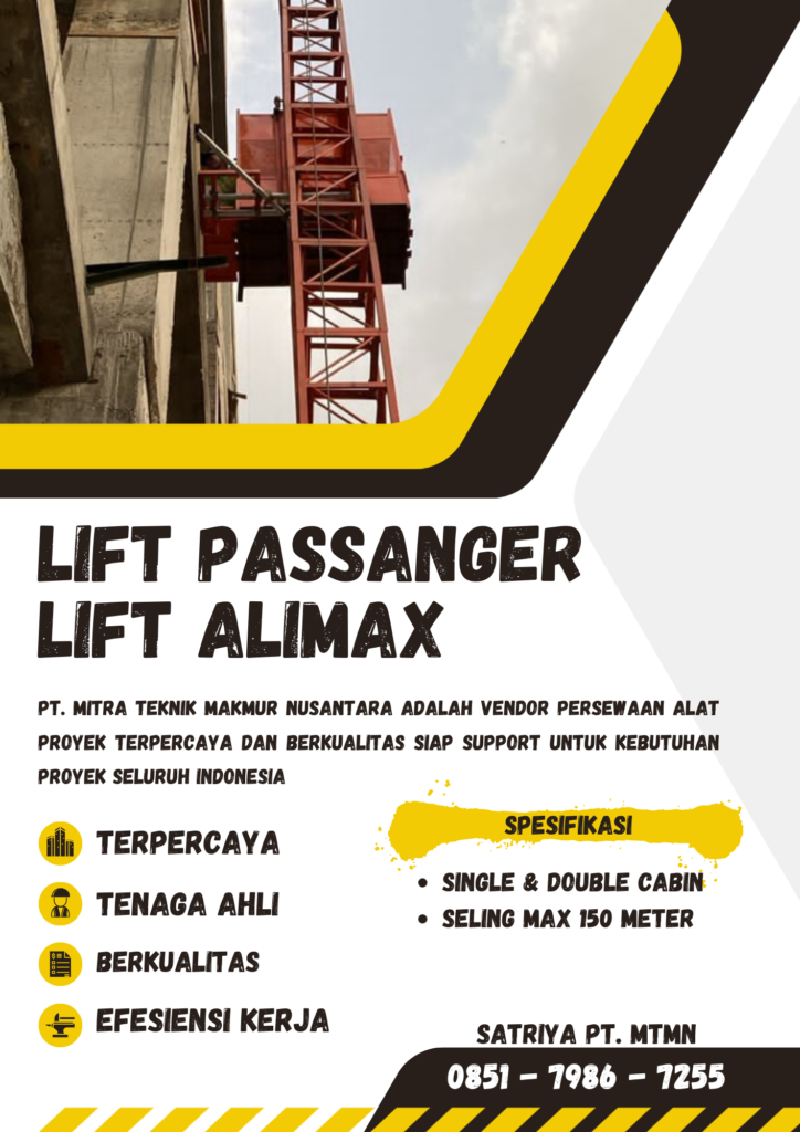 Bangun proyek jadi lebih cepat, aman, dan efisien dengan layanan sewa lift barang profesional di Tegal dari PT. Mitra Teknik Makmur Nusantara (MTMN).
