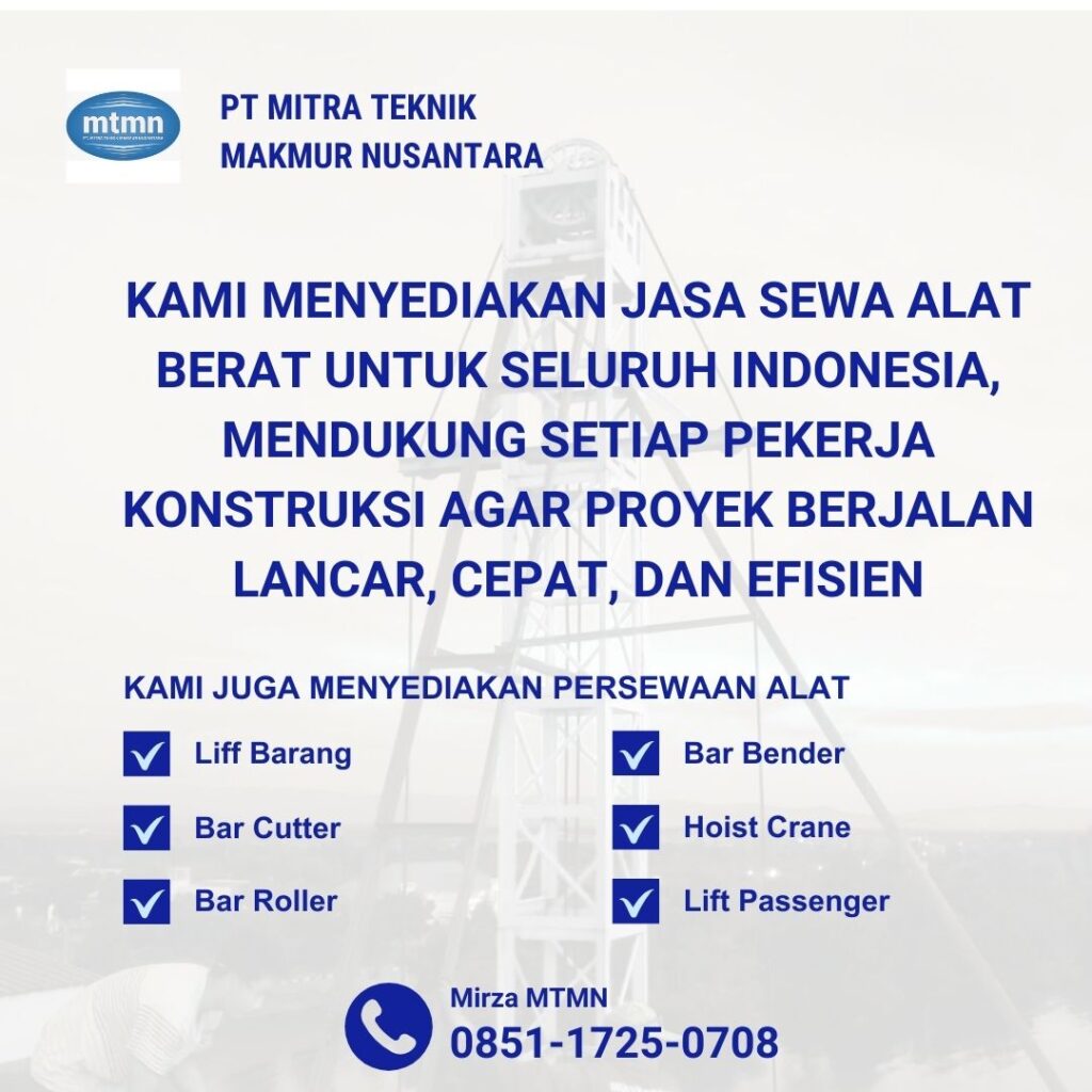 Didukung oleh operator berpengalaman serta peralatan berkualitas, MTMN menjadi mitra terpercaya bagi kontraktor dan developer yang membutuhkan sewa mini crane yang aman, efisien, dan profesional.