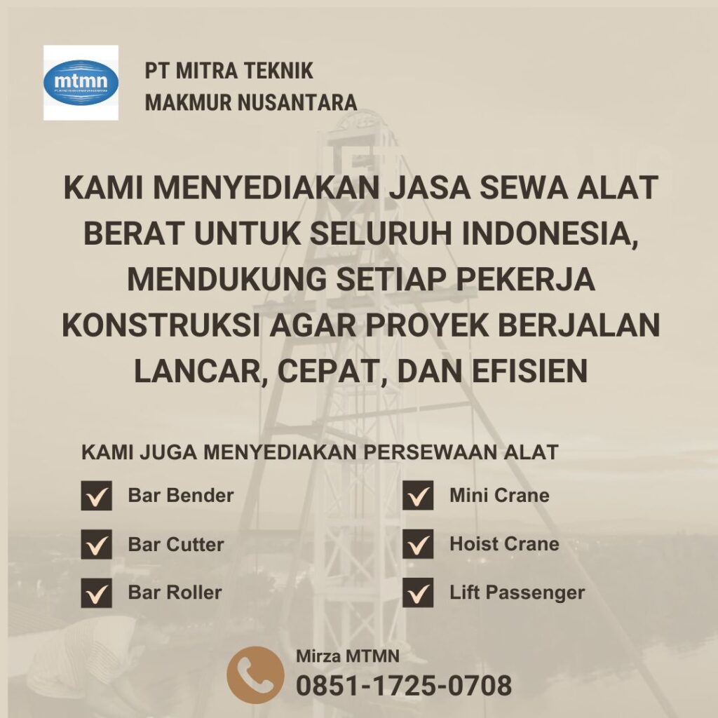PT. Mitra Teknik Makmur Nusantara merupakan perusahaan rental alat proyek konstruksi yang telah dipercaya berbagai kontraktor dan pengembang.