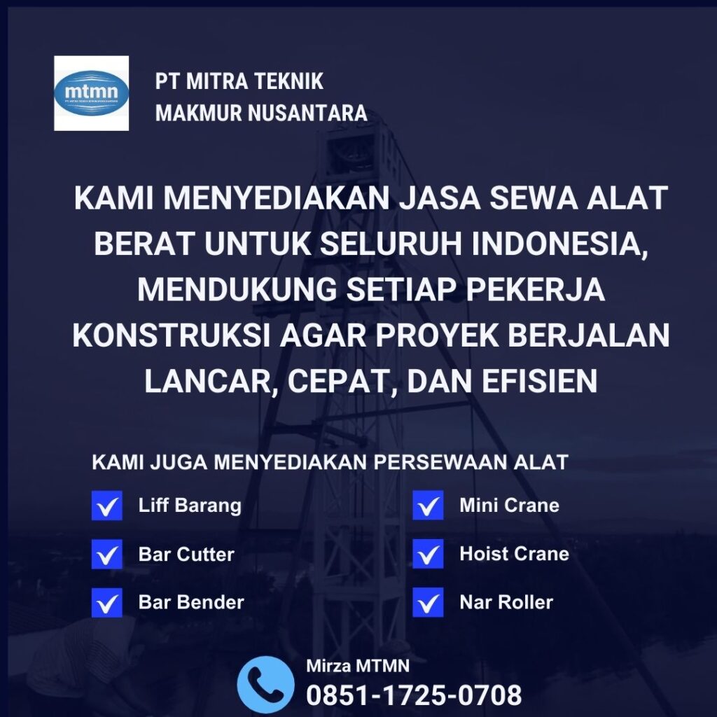 PT. Mitra Teknik Makmur Nusantara merupakan perusahaan rental alat proyek konstruksi yang telah dipercaya berbagai kontraktor dan pengembang.